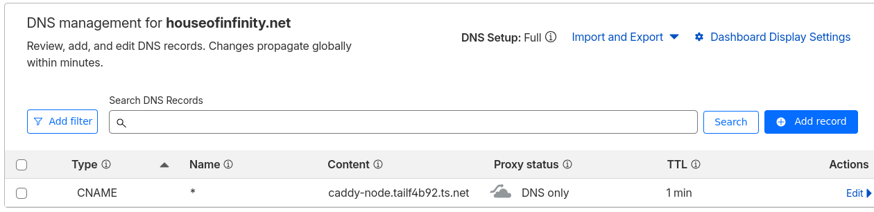 I’m trying to setup caddy as a reverse proxy, via tailscale network with cloudflare CNAME redirection. But I’m having problems getting Caddy to accept my token to generate SSL certificate.