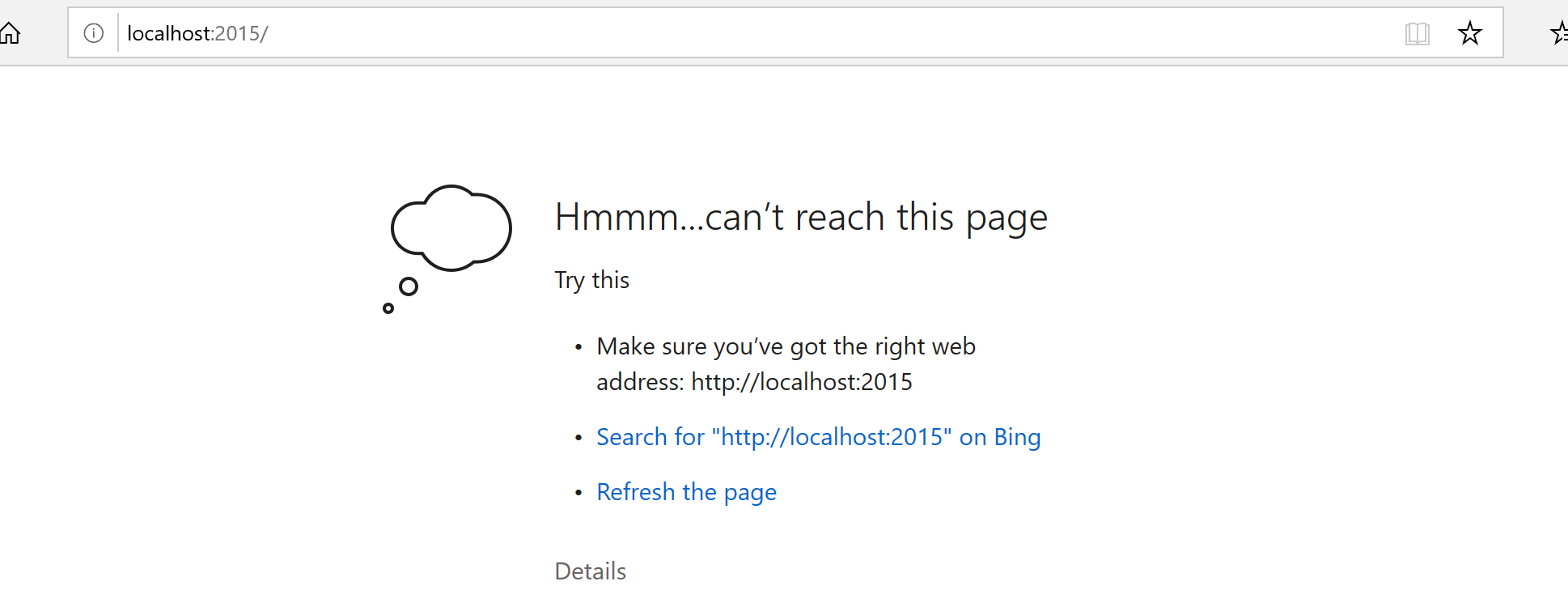 But if you just have localhost, you need to navigate to http://localhost in your browser, not http://localhost:2015.