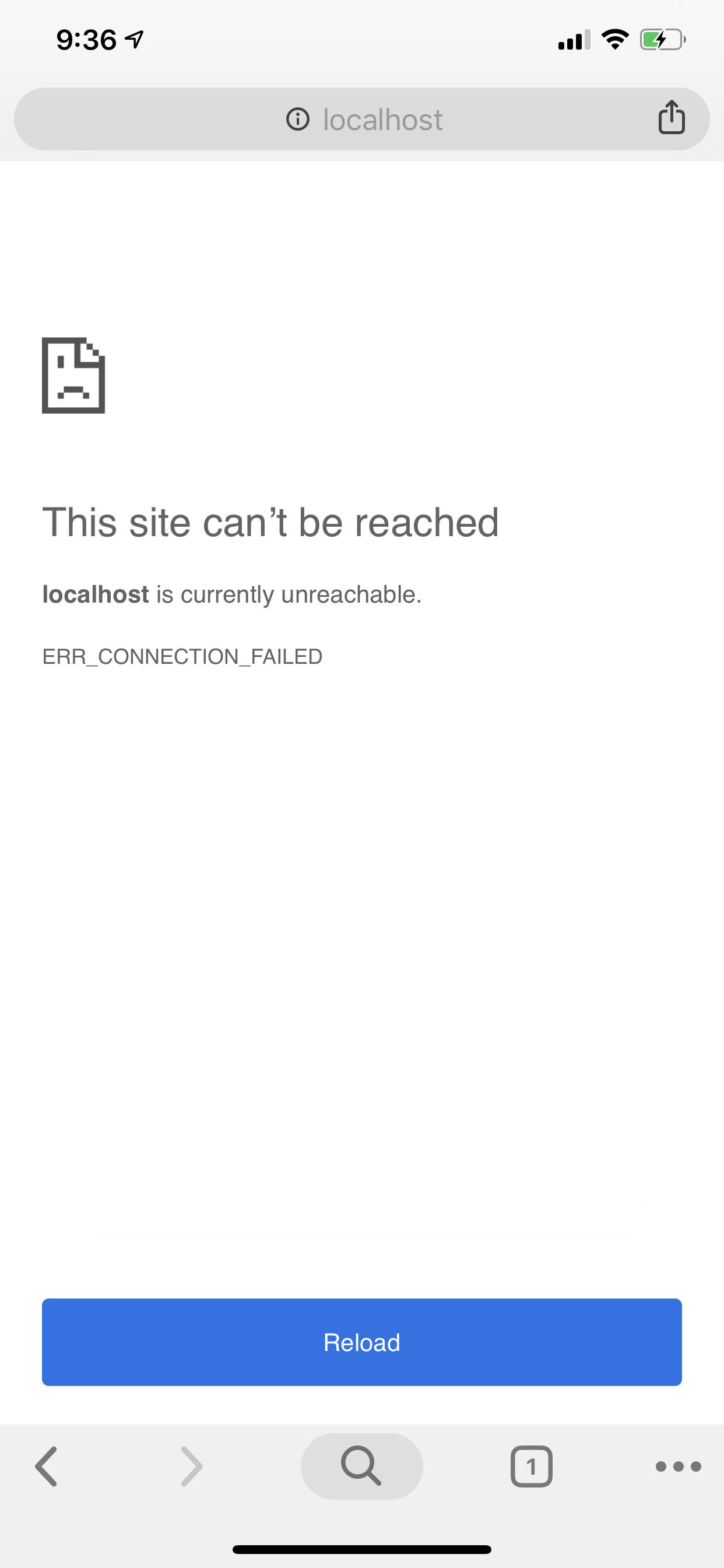 So connecting to localhost on your phone would require you to have a web server running on the phone itself.