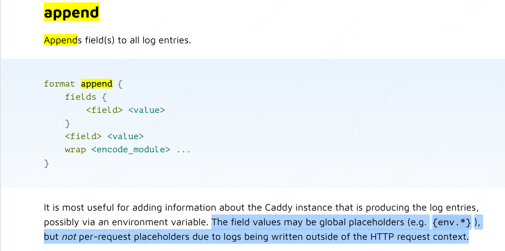 I noticed that the caddy doc says that it supports only global placeholders (e.g. {env.*} ), as shown in the picture: