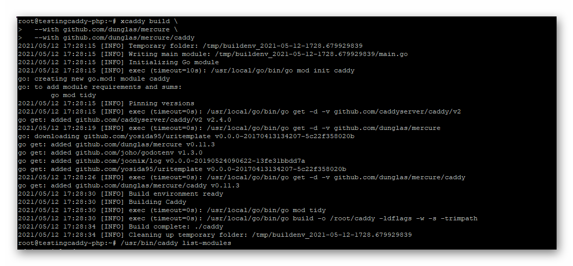 Well, i have just pumped up to the latest version of 1.16, now xcaddy works. But i get another weird issue, XCADDY says, it has installed the module “mercure”, but still can’t find it on the module list?
