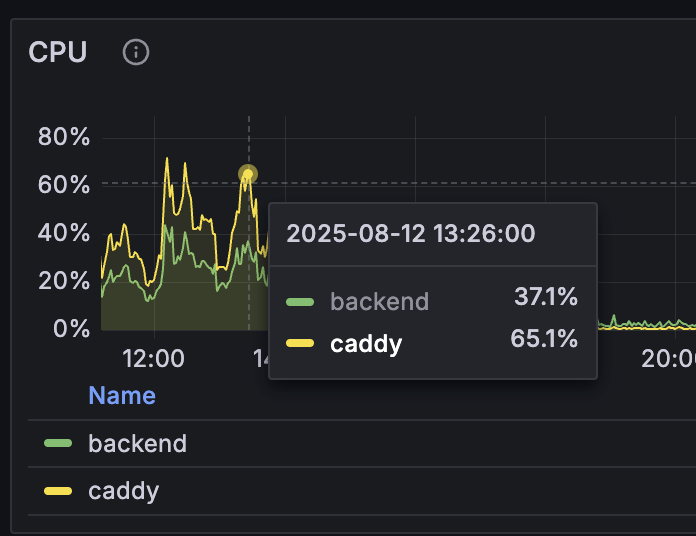 We are using caddy as reverse proxy to our backend(s). But surprisingly at about 10-15 requests/s caddy uses more CPU than the actual application - which has me worried for scaling up.