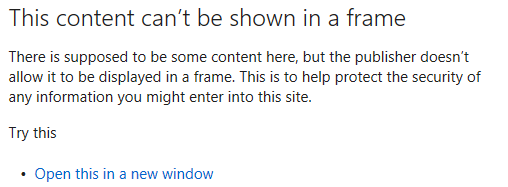 I also think it’s something to do with the x-frame-options detailed here: Allow disable X-Frame-Options: deny dashboard response header · Issue #2279 · portainer/portainer · GitHub