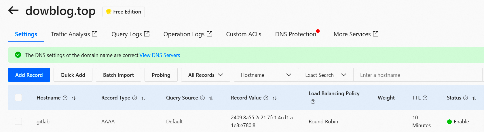 Connected to gitlab.dowblog.top (2409:8a55:2c23:3f91:4cd1:a1e8:e780:8) port 443 (#1)